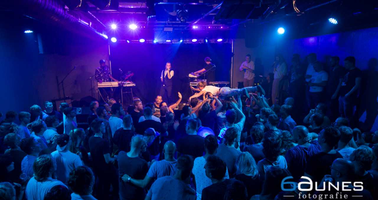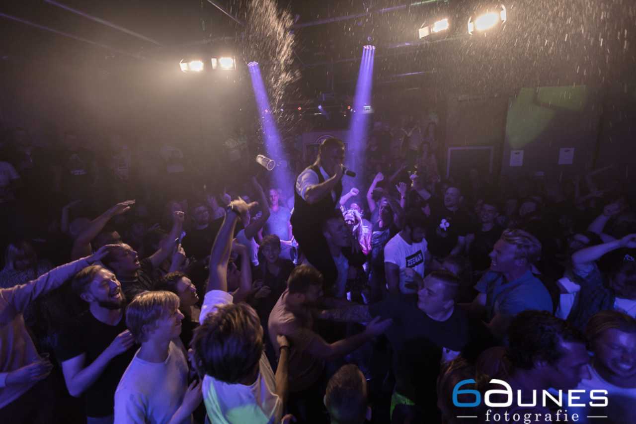 Rond 23:00 uur was het aan De Likt om het publiek voor zich te winnen. Nu heeft De Likt dat niet echt nodig want men is al maanden hyped voor deze act uit Rotterdam. Ikzelf waardeerde de muziek altijd wel maar groot fanaat was ik nooit dus vandaar mijn eerdere sceptische houding. De heren hadden al 2x gestaan in een uitverkochte Schuit maar ik had ze enkel de eerste keer in Katwijk gezien en dat was op de editie van Plugpop waar ikzelf toevallig ook speelde. Ze waren toen al erg vermakelijk en gaande maar meestal verliest zo’n act over de jaren zijn/haar charme. Nu maar checken of het echt zo is.