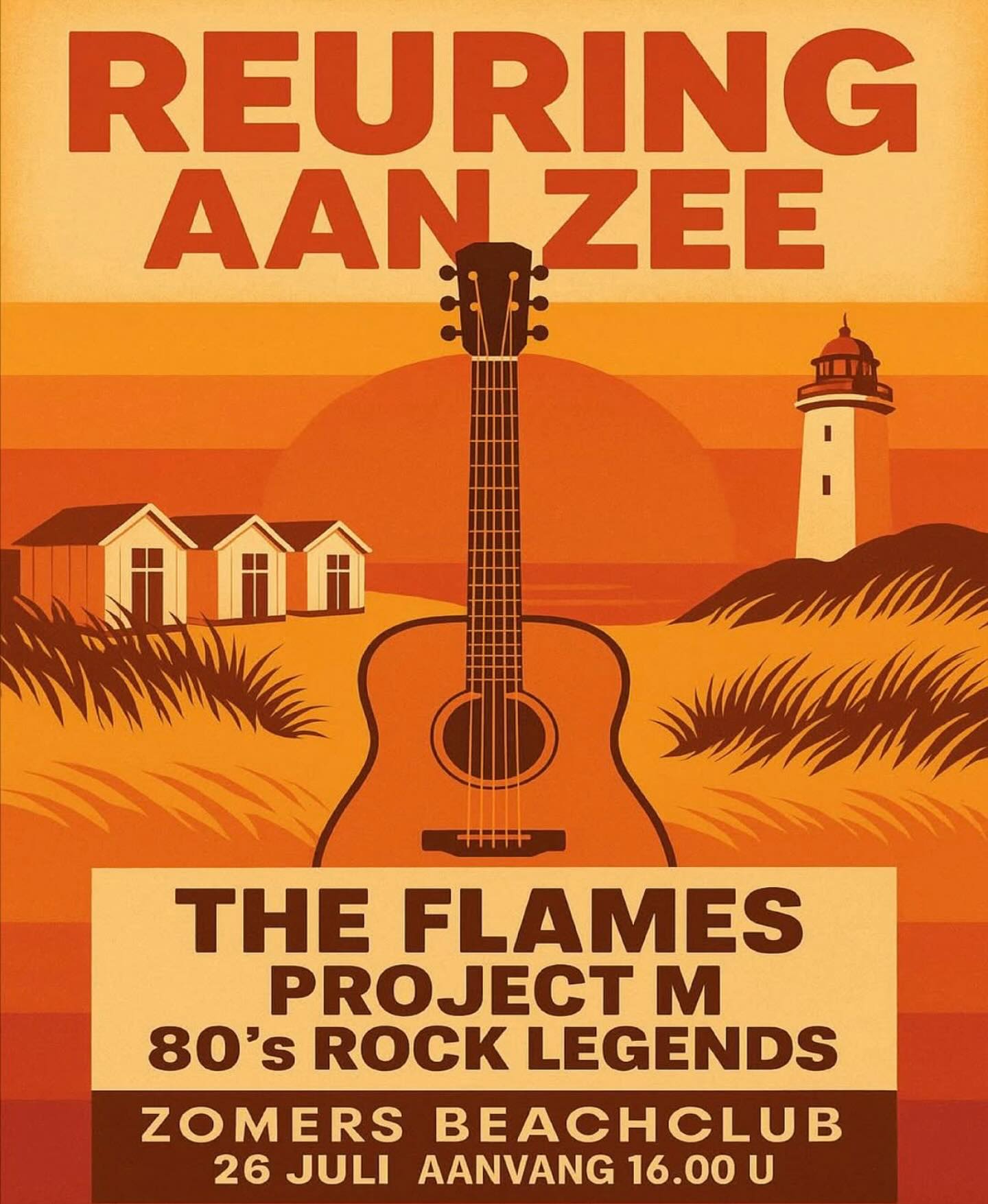 Reuring aan Zee @zomersbeachclub met de bands Coverband Project M, 80’s Rock Legends en The Flames