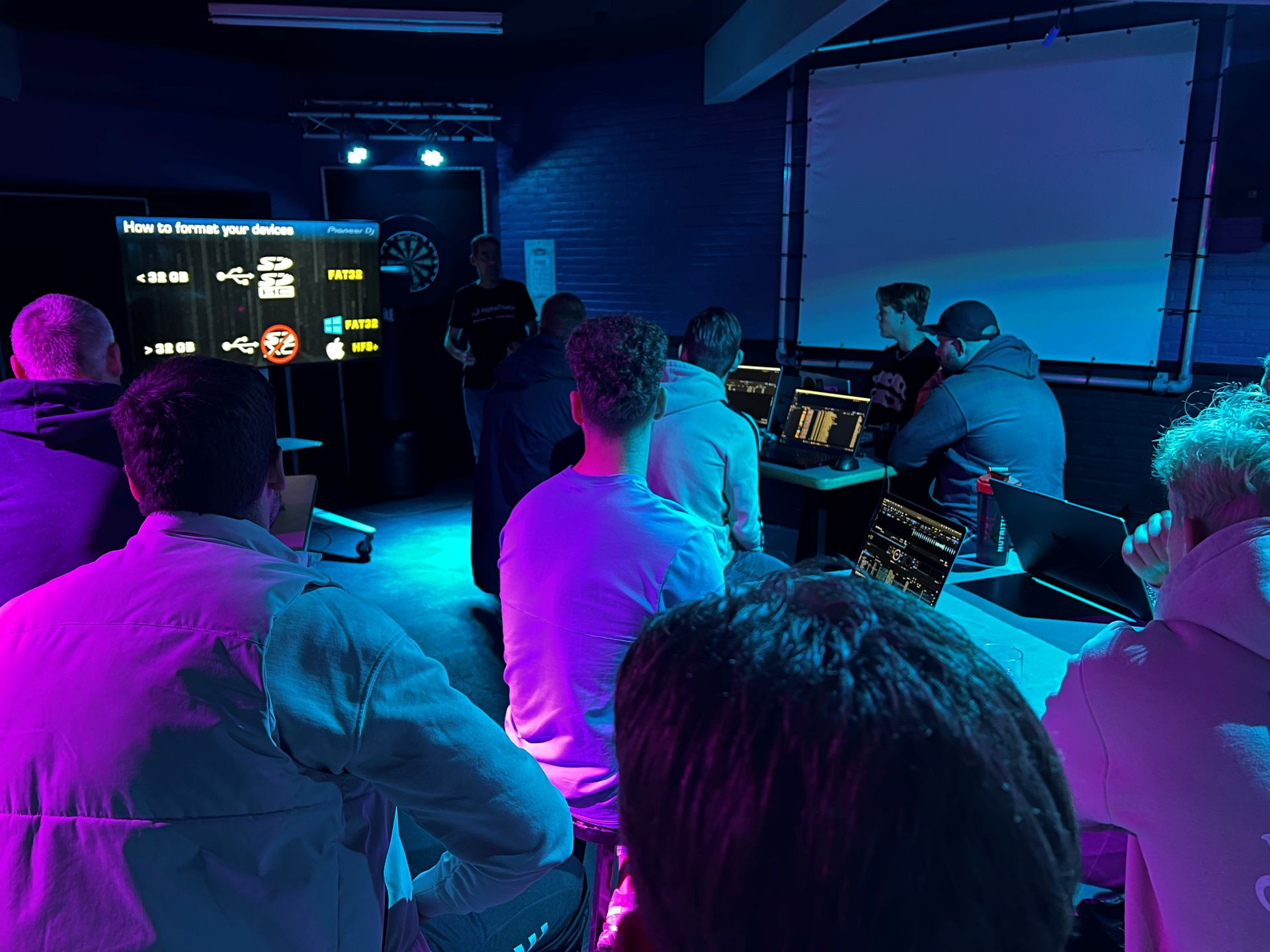 Zo’n 20 Katwijkse DJ’s zaten met de laptop in de aanslag klaar voor de workshop waarna Jeroen in sneltreinvaart alle ins en outs van Rekordbox met ze doornam. Ondertussen nam hij alle tijd voor vragen en keek regelmatig met de DJ’s op de laptop mee om alles uit te leggen. Een uitgebreide omschrijving van de inhoud van de workshop vind je HIER!